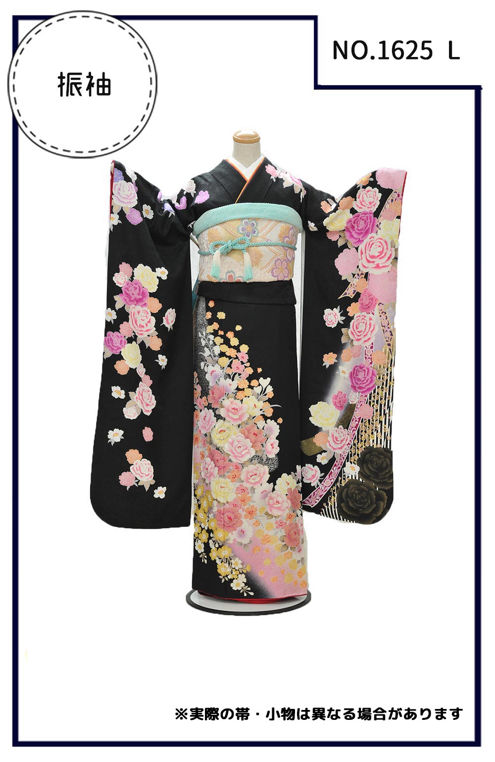 振袖 黒地ばら小桜 [Lサイズ]【1625】