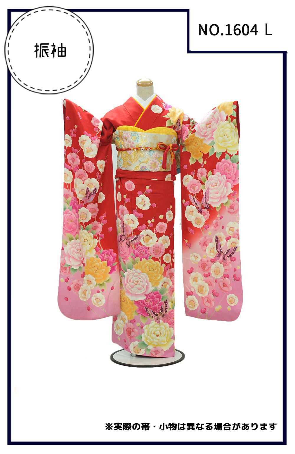 振袖 赤地ばら梅に蝶[Lサイズ]【1604】