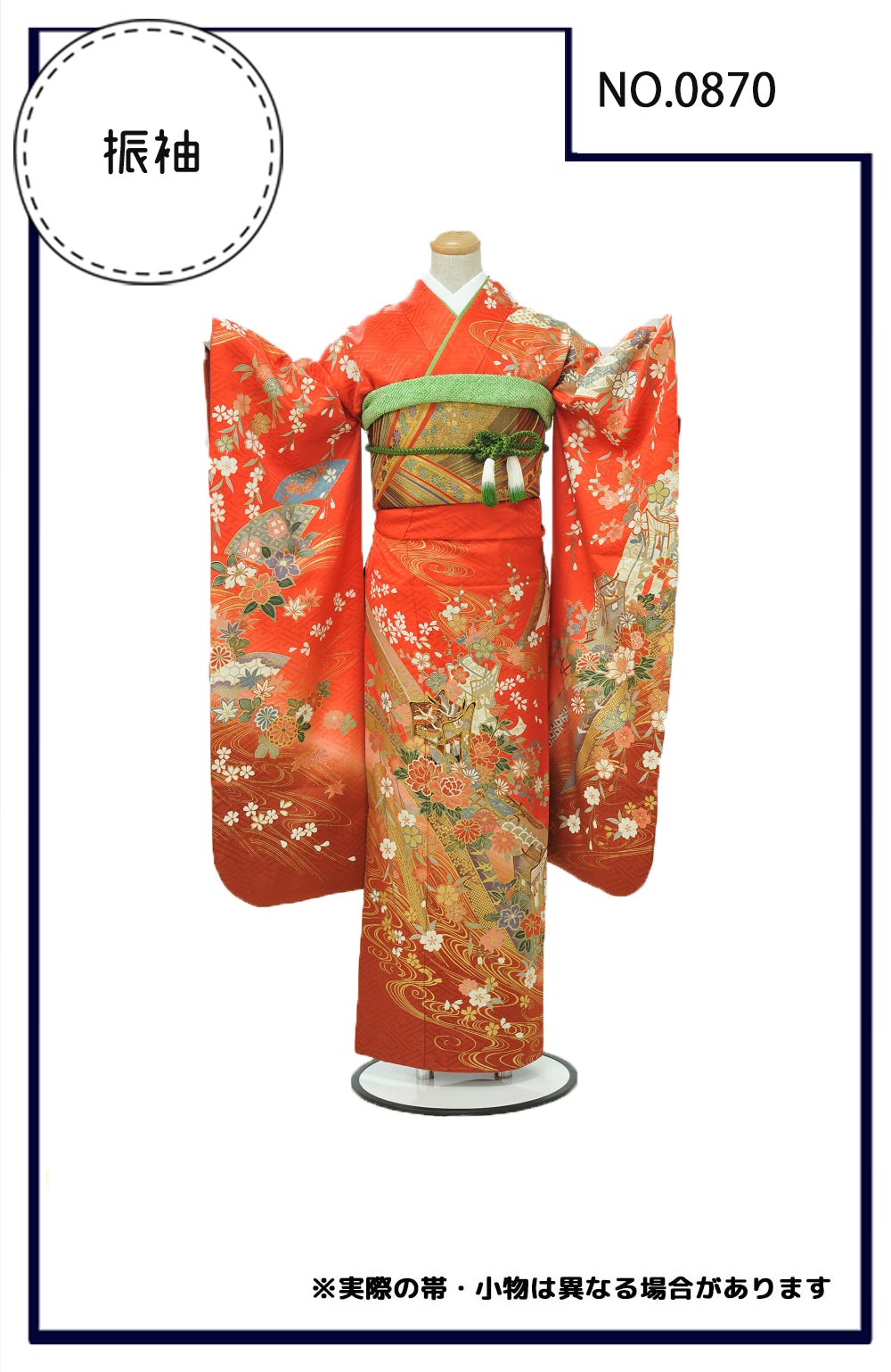 振袖 朱地のしめ御所車流水【0870】