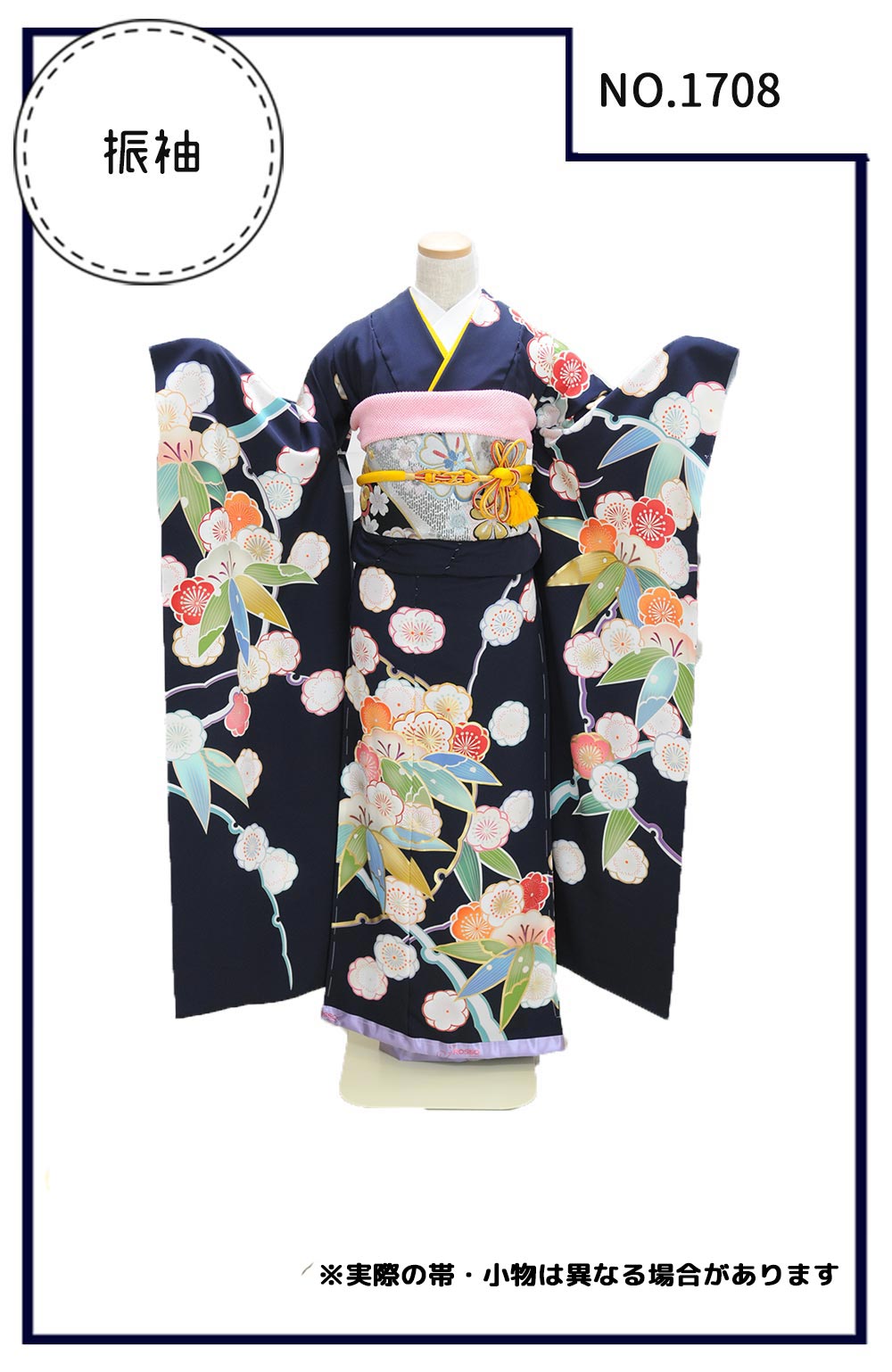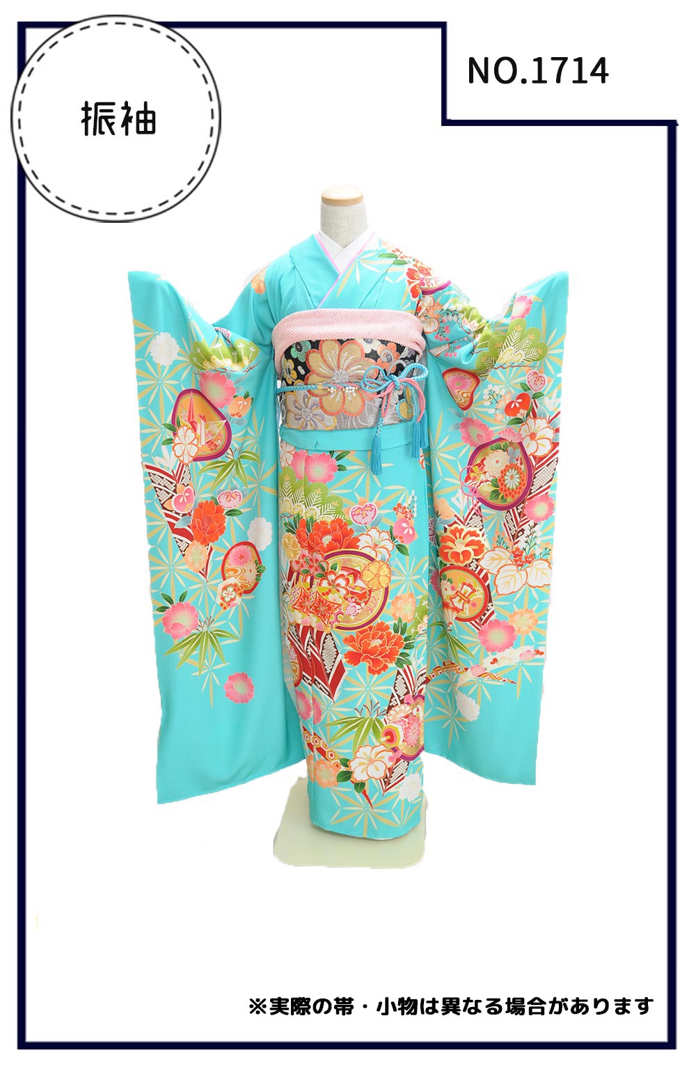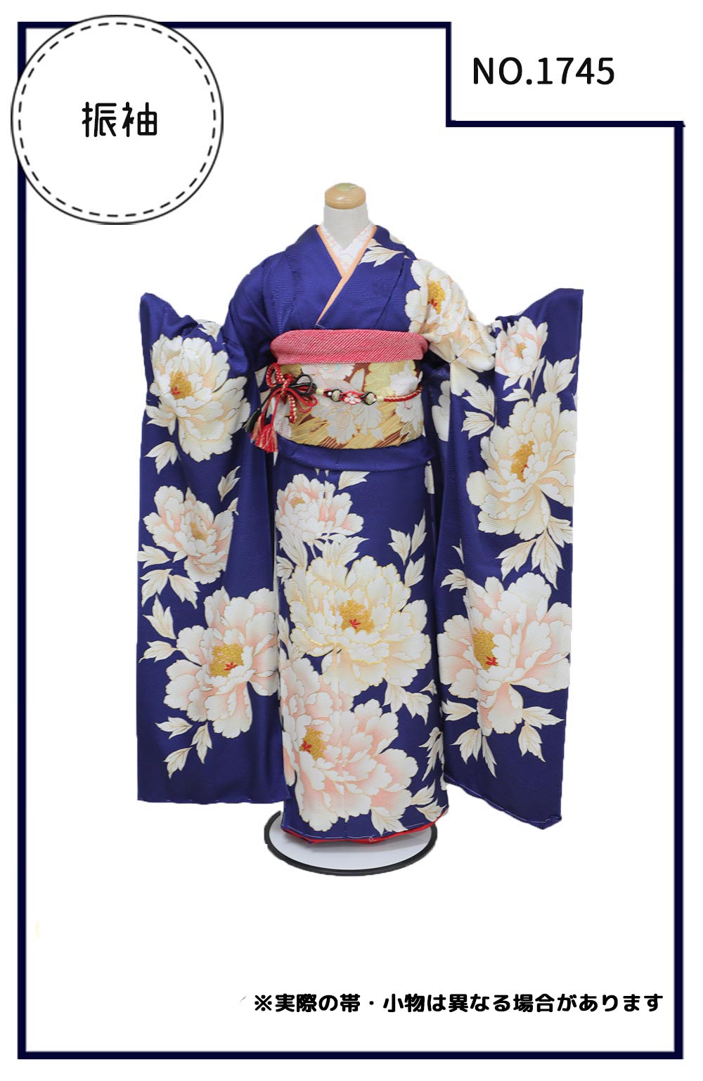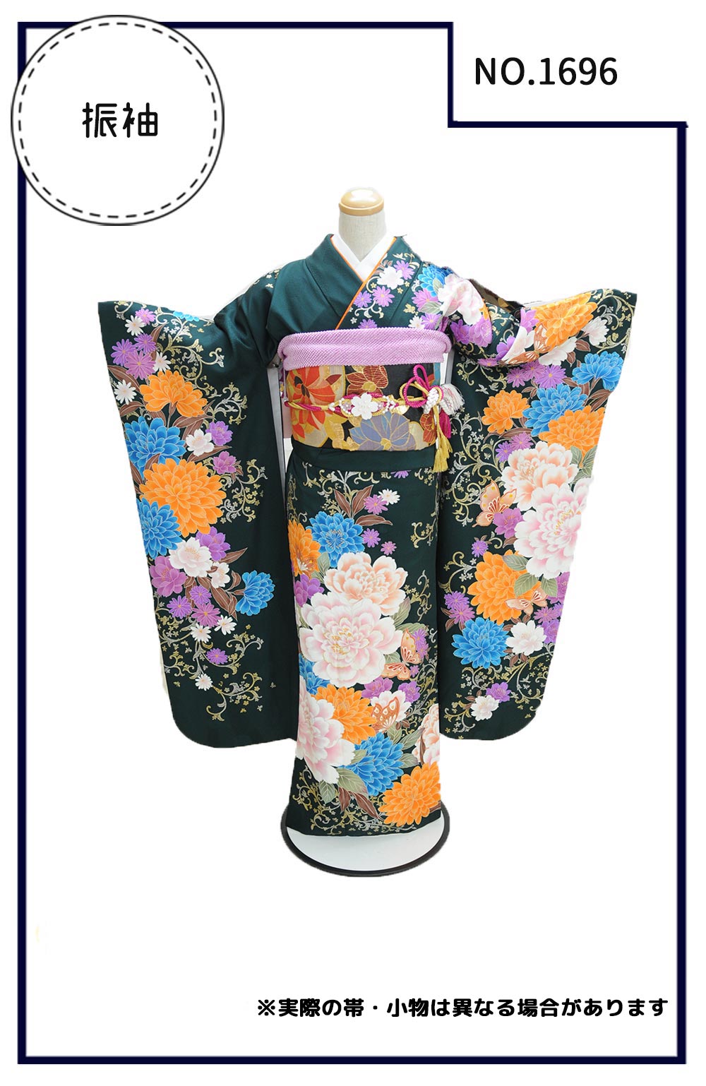 振袖 瑠璃色に菊牡丹御所車【1707】