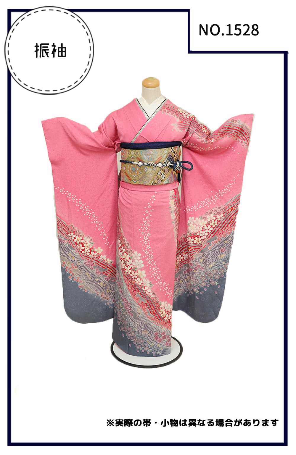 振袖 ピンク地金通波に桜裾グレー【1528】
